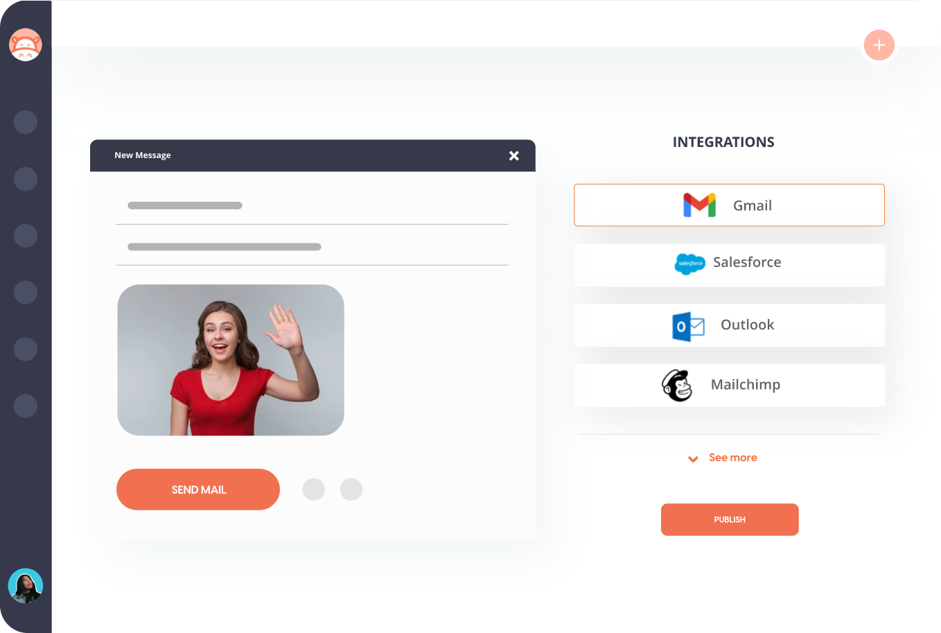 Record, share, track video emails from tools you already use. We’re integrated with 25+ popular sales and marketing tools - including email clients (Gmail, Outlook), Sales CRMs (Salesforce, Pipedrive ) Marketing Automation (Hubspot, Marketo), and Sales Engagement tools (Linkedin Sales Navigator, Outreach, Klenty).